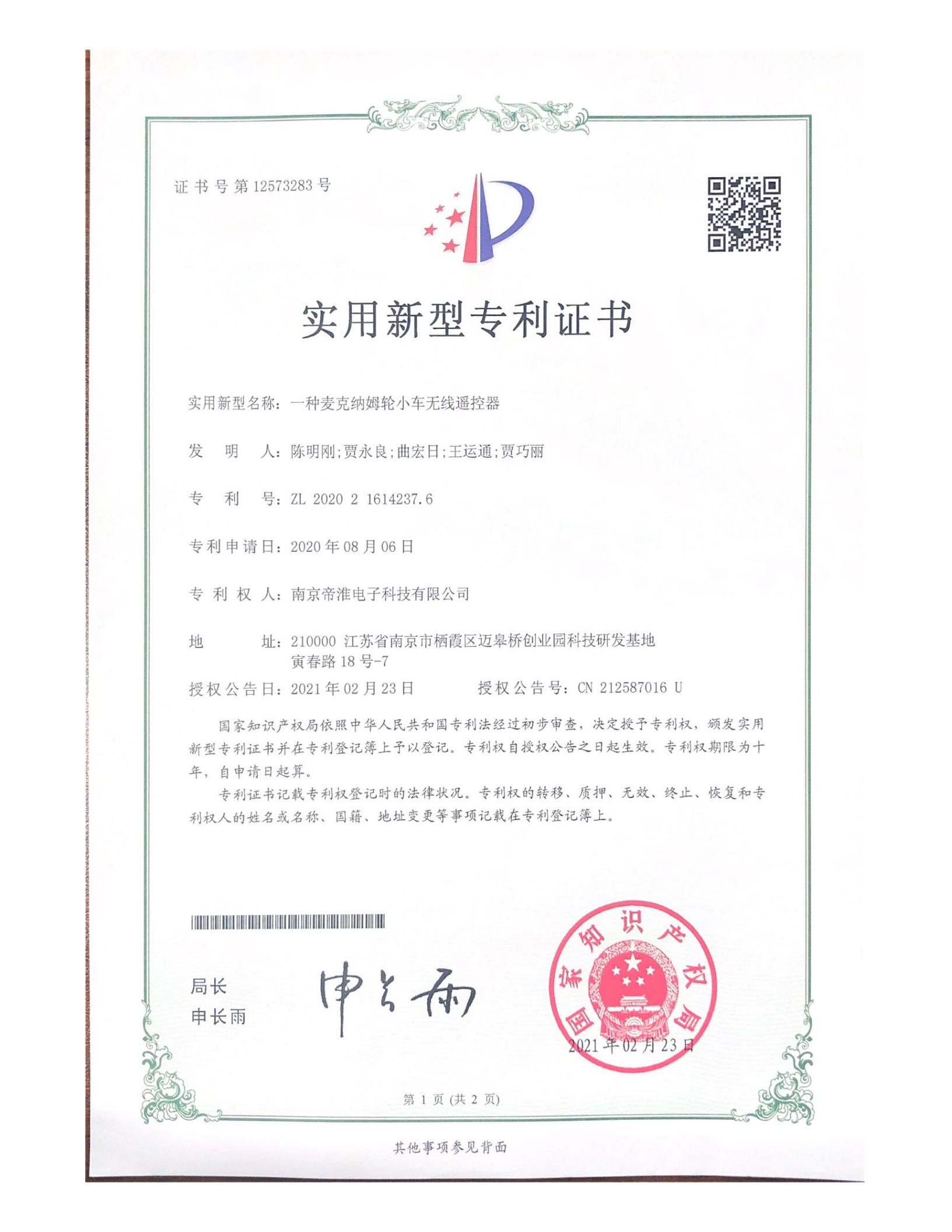 南京帝淮电子科技有限公司,国内工业??仄餍幸盗炀笠?,自主研发、定制、非标设计各类工业级无线??仄?、工业级有线控制器、智能化自主算法逻辑的本地控制器等系列产品。已经申请及正在申请的技术专利、外观专利有近三十项左右,并通过了CE欧盟认证、国家级试验检验报告、EMC电磁兼容认证等。